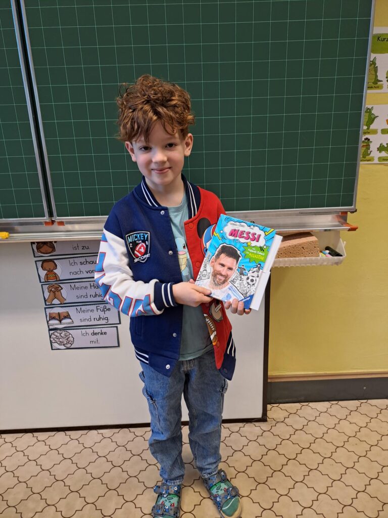 Die Kinder der 2b Klasse machen die ersten Schritte mit den Buchvorstellungen. Sie suchen sich